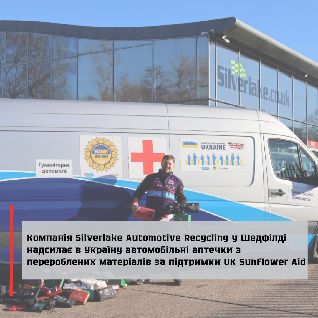 Компанія Silverlake Automotive Recycling у Шедфілді надсилає в Україну автомобільні аптечки з перероблених матеріалів за підтримки UK Sunflower Aid