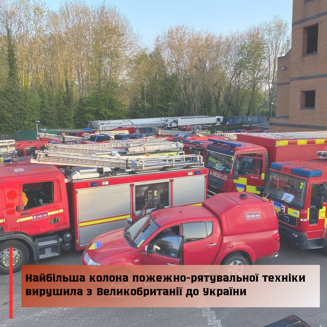 З Великої Британії вирушила колона пожежно-рятувальної техніки, щоб доставити екстрену пожежну допомогу в Україну.